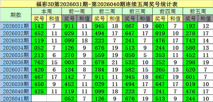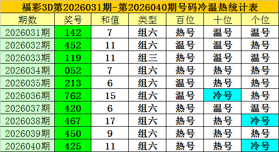 上期回顾:福彩3D第2026040期开奖奖号为:425,奖号类型为:组六,奖号冷温热态为:热号+热号+冷号。
