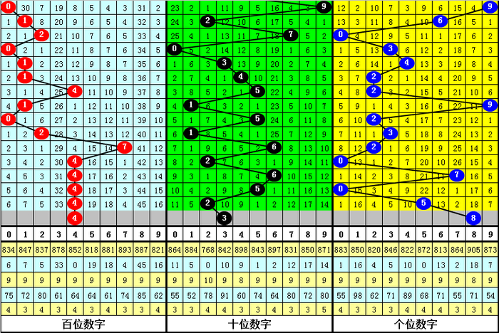 百位:上期开出奖号为偶数小 号:4,分析最近7期走势,该位分别开出:偶数小 号:0、偶数小 号:2、奇数大号:7、偶数小 号:4、偶数小 号:4、偶数小 号:4、偶数小 号:4,其中偶数走势较热,小 号表现活跃,本期百位关注偶数小 号出现。
