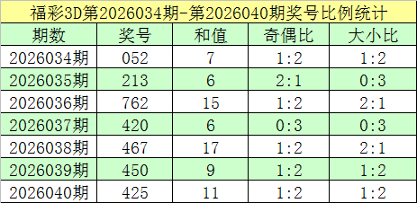 福彩3D第2026040期回顾:奖号为425,奖号奇偶比为1:2,大小比为1:2,和值为11,类型为组六。