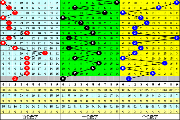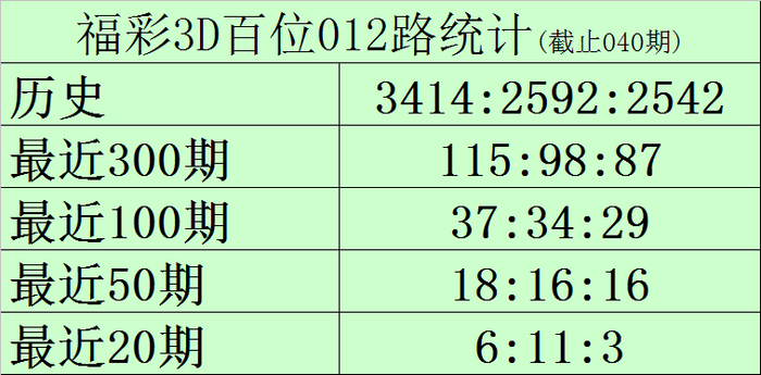 百位推荐:百位最近20期号码012路比为6:11:3,目前0路号码遗漏6期,1路号码遗漏0期,2路号码遗漏5期,另外0-9号码遗漏期数分别为: